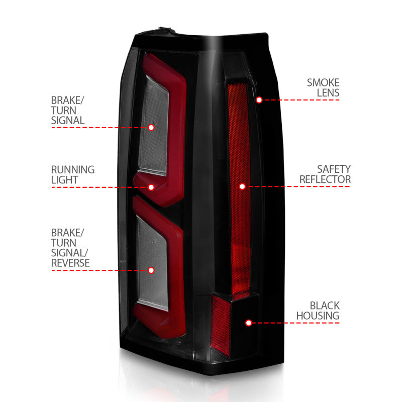 ANZO 2015-2020 Chevrolet Tahoe LED Tail Lights w/ Light Bar Black Housing Somke Lens