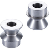 Our high mis-alignment spacers are CNC machined in-house from heat-treated stainless steel and are available in an assortment of sizes for different heims and uniballs. Our design maximizes strength and mis-alignment angles for the specific bolt sizes. Refer to our spec chart for dimensions and specs. These are sold in pairs (2 spacers).