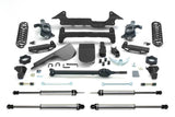 Our Hummer system is constructed much like all of our IFS systems with extended steering knuckles and high clearance crossmembers but the similarities stop there. To properly address the H2's fulltime transfer case we include a CV style front driveshaft with this system to provide smooth driveline operation. Also unique to this system is two 1/4'' thick skid plates, one for the front differential and one for the transfer case. Rear lift on factory air bag H2's comes from a super stout bag spacer while coil spring models receive replacement coil springs that are driver and passenger specific. Includes front and rear 2.25 Dirt Logic Stainless Steel shocks.