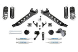 Improving on the Ram suspension design, Fabtech offers their trademark Radius Arms in a complete lift kit system. These exclusive tubular Radius Arms have recognizable dimple die side plates for superior strength and a signature of quality. The rugged Arms provide increased caster for use with oversized tires and lifted suspension heights. The factory front Ram coil spring has a noticeable bow to it with a very high spring rate for the weight rating of the vehicle. This creates a harsh ride with a nervous feel from the suspension. To correct this, Fabtech uses a straight vertical coil design. In order to utilize a straight coil, the lower spring seat mount must be modified via a Fabtech patented angular spring mount that attaches to the stock seat. This eliminates the bow to the spring and allows for a lower rate with a straight coil for a supple ride without sacrificing load carrying capacity. A Fabtech exclusive. For the rear, this lift kit has the perfect balance between ride quality and retaining the factory carrying capacity. By utilizing a dual rate spring design, it provides a good highway ride in the first stage of compression and then the second stage handles heavy loads. Heavy duty 1/4" thick steel front and rear Track Bar drop brackets center the axles under the vehicle with the new ride height. A Fabtech innovation with this Ram lift kit is the heavy duty steel front bump extensions. They retain the stock bump stop cushions for progressive damping and will not allow the suspension to over travel. This is a superior feature compared to replacement long length urethane bump stops as they can push out under harsh conditions. FEATURES: Fabtech?s trademark Radius Arms with recognizable dimple die side plates providing additional strength and increased caster. Front straight Coil Springs with Fabtech?s patented angled mounts for smooth ride. Heavy duty Track Bar drop brackets center the axles under vehicle for proper tracking. Dual rate rear coil spri