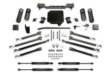 Fabtech's Crawler long arm Gladiator lift kit is built to meet the most experienced driver's expectations without having a questionably fabricated suspension. If you are in the market for a system that will work properly right out of the box and does not require continued fabrication and constant maintenance, look no further. A key part of the Crawler kit is the Link Arm geometry and ground clearance. The location of the of the link arms is critical in providing superior handling throughout the travel range. Fabtech has found the Gladiator's sweet spot geometry for the link arms that provide a superior driving long arm system compared to all others on the market. Front link arms are mounted to a full width crossmember that spans frame rail to frame rail. This crossmember is key in not only in mounting the Links arms at the correct geometry but it adds critical strength to the Gladiator frame for hard offroad use. Adjustable rear links utilize the factory frame and axle brackets for an easy installation. The Fabtech lower Link Arms are massive and built of 2in OD .313 thick wall tubing that is guaranteed not to bend. Upper and lower Link Arms includes the Fabtech's legendary 5 Ton joints that come with lifetime guarantee of never wearing out. They are superior for offroad use with a smooth quiet operation on the street. This high quality Long Arm Gladiator lift kit will provide exceptional offroad performance with good highway manners for the discerning Jeep enthusiast. Each Fabtech component has been designed with specific features and benefits that create this quality suspension system. What's In The System: Front Upper and Lower Link Arms. Rear Upper and Lower Link Arms. Front Link Arm Crossmember. Heavy Duty Flipped Draglink. Front and Rear Track Bar Brackets. Front and Rear Corner Specific Dual Rate Coil Springs. Front and Rear Sway Bar Links. Front Shock Mount Bracket. Front and Rear Bump Stop Extensions. LINK ARMS: Heavy duty is the only way to describe these