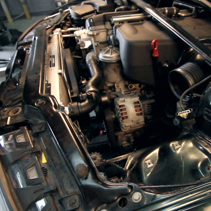 Keep your E46 M3 cool with the Mishimoto Performance Aluminum Fan Shroud Kit! This unique electric fan shroud setup completely eliminates the stock, failure-prone mechanical fan. The fan shroud mounts directly to both stock and Mishimoto radiators and includes a 16" high-flow electric fan that produces over 1850 cfm of airflow. Our in-house Dynojet testing has shown a 5 whp gain from 6500-7500 rpm and 1-2 whp gains over a majority of the power band after removing the factory clutch fan. Optionally, this kit can include an adjustable fan controller and wiring kit, which will provide the user with total control over coolant temperatures. The Mishimoto BMW E46 Fan Shroud Kit includes a removal tool for the clutch fan as well as all hardware required for installation. This fan shroud has a brushed finish that provides a subtle accent for your engine bay. As with all our products, this fan shroud kit includes the Mishimoto Lifetime Warranty, ensuring superior product quality and craftsmanship.