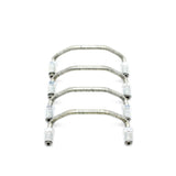 Crossover tube asssembly for Dynalite Single .35 wide rotor calipers 120-0269, 120-0725. Stainless Steel tubing with plated steel tube nuts.
